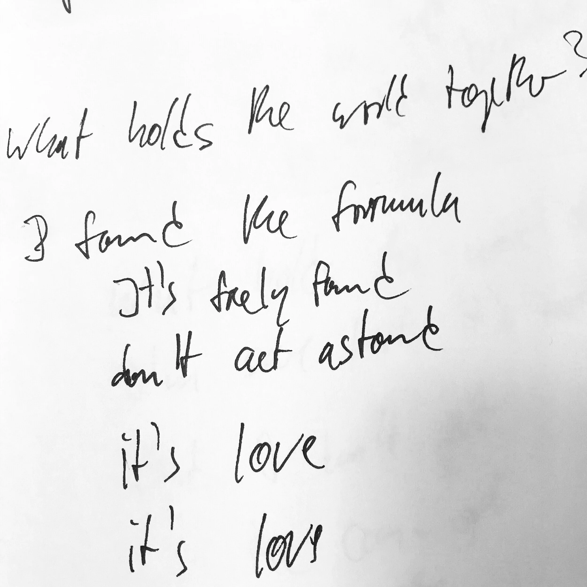 9:00 p.m. - Start writing the first bits of lyrics and music on my piano. Had this sort of unrequited love scenario in mind, the conversations you might have with someone unreachable in the imaginary circumstance that you are able to talk it out.